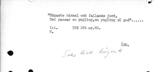 //// "Högaste himmel och fallande jord, //// Det passar en yngling,en yngling så god"...... //// 1:4. INE 28b nr.82. //// N. //// ÅBO. ////