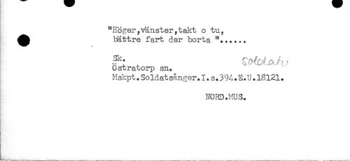 //// "Höger;Vänster,takt o tu, //// ^^ bättre fart der borta "...... //// Ostratorp sn. //// Mskpt.SoIdat sånger.I.S.39A.E.U.18121. //// NORD.MUS. ////
