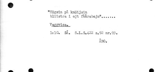 //// "Högsin på knöijsin //// bliistra i ejt fåårabejn"....... //// ! //// Vaggvisa. //// 1:10. SÅ. S.L.S.422 s.92 nr.93. //// ÅBO. //// i"..' ////