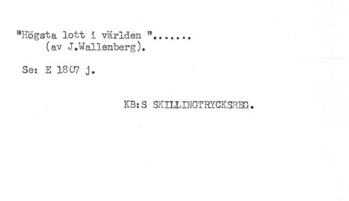 //// "Högsta lott i världen "....... //// (av J.Wallenberg). //// Se: E 18 U7 j. //// KB:S SKILLINGTRYCKSREG. ////