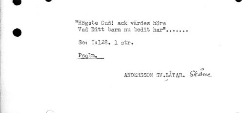 //// * //// B?' //// "Högste Gud t ack värdes höra //// } ' Vad Bitt bam nu bedit har"....... //// Se: 1:128. 1 str. //// * //// I Psalm. ..... //// ANDERSSON SY .LÅT AR. //// ..... ////