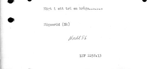//// Högt i ett trä en kraga....... //// Högseröd (Sk) //// LUF 2258:13 //// - ////
