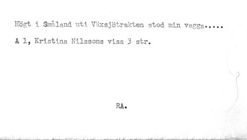 //// Högt i Småland uti Väx sjötrakt en stod min vagga*.... //// Å 1, Kristina Nilssons visa 3 str. //// A //// Y //// t //// s //// i //// RA. ////
