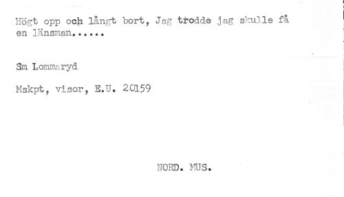 //// Högt opp oc^ långt bort. Jag tiodde jag skulle få //// en länsman...... //// 3m Lommaryd ; //// ! //// Mskpt, visor, E.U. 20159 ////