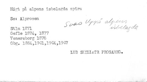 //// Högt på alpens isbelagda spira //// Se: Alprosen , ^ ^ //// Stim 1871 //// Gefle 1874, 1377 //// Venersborg 1876 //// Gbg. 1884,1901,1904,19U7 //// LUB SKII.L:TR PR0SARB3. ////
