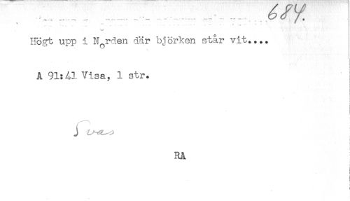 //// ' '* * — ..... ' ......* ..... ' . //// Högt upp i Norden där björken står vit.... //// ! //// i //// < //// < //// A 91:41 Visa, 1 str. //// < //// I //// < //// i //// c //// RÅ //// r //// i //// i //// i //// i //// t //// i ////