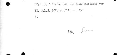 //// Högt upp i Norden där jag barndomsfodder var //// - //// FY. S.L.S. 542. s. 311. nr. 157 //// N. //// ÅBO. - ////