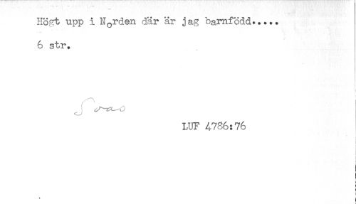 //// Högt upp i Norden där är jag barnfodd..... //// 6 str. //// t //// LUF 4786:76 ////