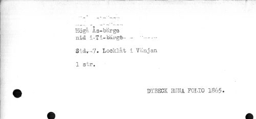 //// Höga Ås-bärge //// nid i-Ti-baygÖ- - -- //// Locklat i Vänj an //// HM* //// 1 str. //// ^ DYBECK RUNA FC-1.10 1365. //// K' ^ ////