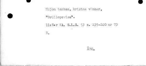 //// Hoj om tanken, kristna vinner, //// ^ "Bröllopsvisa". //// 5- //// 11:8+r NA. S.L.S. 53 s. 235-2^0 nr 73 //// N. //// ÅBO. //// ,___ ////