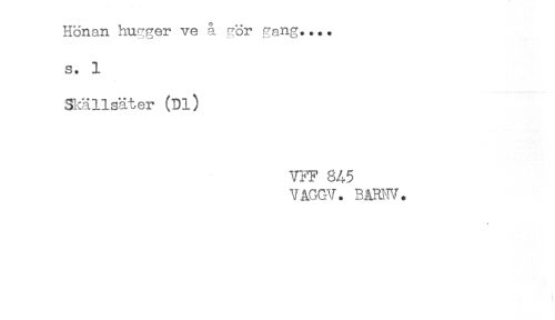//// Hönan hugger ve å gör gang.... //// s. 1 //// Skällsäter (Dl) //// VFF 845 //// VAGGV. BARIW. ////