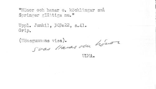 //// "Hönor och hanar o. köcklingar sinå //// Springer glättiga nu." //// ! //// ! //// Uppl. Junkily 3C9:22y s.41. //// Grip. //// (Hönsfrunmsns visa). y r^— //// j ^ ^^ ^ — ////
