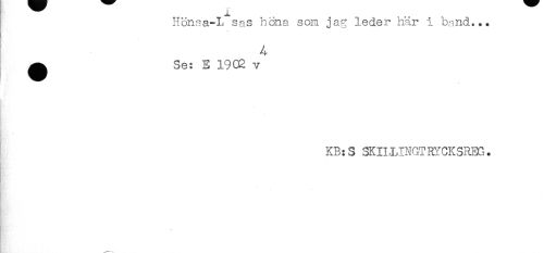 //// Hönsa-L sas hona som jag leder här i band... //// A //// ^ Se: E 19C2 v //// ^ y //// KB: S 3KII ,LINGT RYCKSRBG. //// * //// * //// * ////