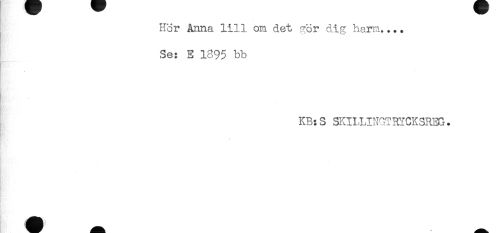 //// Hör Anna lill om det gör dig harm.... //// Se: E 1895 bb //// ! //// KB:S SKIILINGTRYCKSRB5. ////