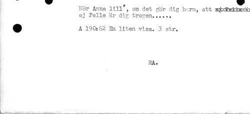 //// Hör Anna lill , om det gör dig harm, att //// ej Pelle är dig trogen...... //// ^ A 190:62 En liten visa. 3 str. //// RA. ////