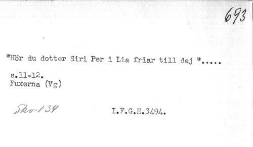 //// t //// ! //// ! //// "Hör du dotter Siri Per i Lia friar till dej "..... //// s.11-12. //// Fuxema (Vg) //// * t //// I.F.G.H.3A94. //// ^ t ////