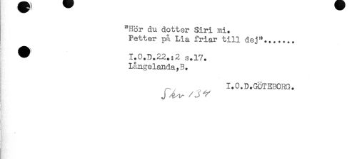 //// "Hör du dotter Siri mi. //// Petter på Lia friar till dej"....... //// v //// ^ I.0.D.22.:2 s.17. //// Långelanda,B. //// 1.0.D.GÖTEBORG. //// - ////