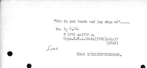 //// h. , //// "Hör du god bonde vad jag säga må"..... //// Se: B^ 6,30. //// E 1782 a:1788 e. //// Upps.Z.P.s.23:14(1786):24:37 //// (1812) //// ^ KB:S 3KILHNGTHTCKSREG. ////
