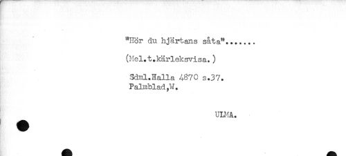 //// "Hör du hjärtans såta"....... //// (Mel.t.kärleksvisa.) //// Sdml.Halla 4870 s.37. //// Palmblad ,W. //// ^ un-iÄ. ////