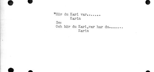 //// "Hör du Kari var....... //// Karin //// Se: //// Och hor du Kari,var har du....... //// Karin ////