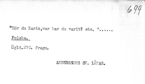 //// "Hör du Karin,var har du varit? etc. "...... //// Polska. //// Cgld.270. fragm. //// ANDERSSONS SV. LÅTAR. ////