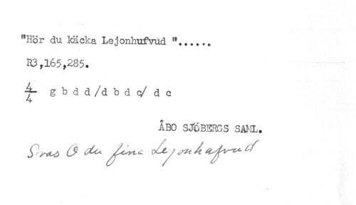 //// "Hör du käcka Lejonhufvud "...... //// R3,165,285. //// gbdd/dbdc/dc //// ÅBO SJÖBERGS SÅJ.il. //// / ////