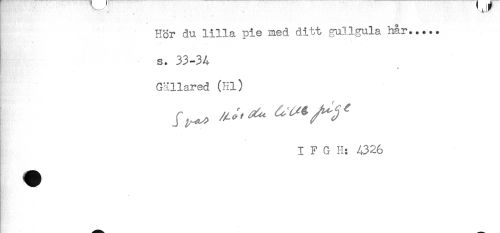 //// Hor du lilla pie med ditt gullgula har..... //// . //// s. 33-34 //// Gällared (Hl) //// I F G H: 4326 //// - - - ////