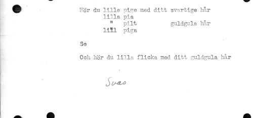 //// För du lille Di^e med ditt svarti^e hår //// — * i, r' //// lilla pia //// " pilt guldgula hår //// liM piga //// Se //// Och hör du lilla flicka med ditt ^uld^ula liår ////