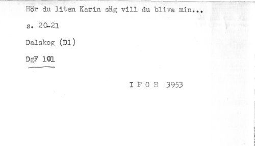 //// hor au iii-en Karm sag vill du bliva min... //// s. 2CL21 //// Dalskog (Dl) //// DgF 101 //// I F G H 3953 //// * //// t //// i //// ) //// i ////