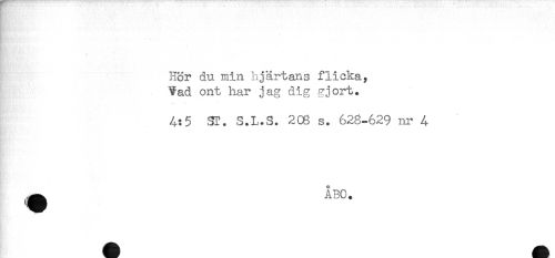 //// Hör du min hjärtans flicka, //// ont har jag dig gjort. //// 4:5 sr. S.L.S. 2C8 s. 628-629 nr 4 //// ÅBO. ////