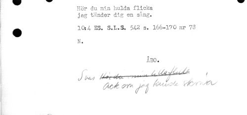 //// Hor du min hulda flicka //// jag tänder dig en sång. //// i ^ 10:4 ES. S.L.S. 542 s. 166-170 nr 78 //// N. //// ÅBO. //// ! . //// -—^ ////