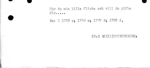 //// Hör du min lilla flicka ack vill du gifta //// ' 0/1 * * * * //// ^ Se: N 1789 a; 1790 a; 1797 d; 1798 d, //// KB: S SKIIIIir : RYCKS13G; ////