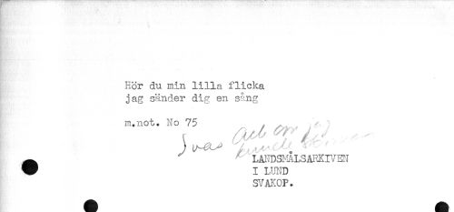 //// Hor du min lilla flicka //// jag sänder dig en sång //// m.not. No 75 , , , //// ) ^^ / - . //// ^ LAHDSIALSARKIVE? //// ^ I LUND //// ^ AKOF. ////