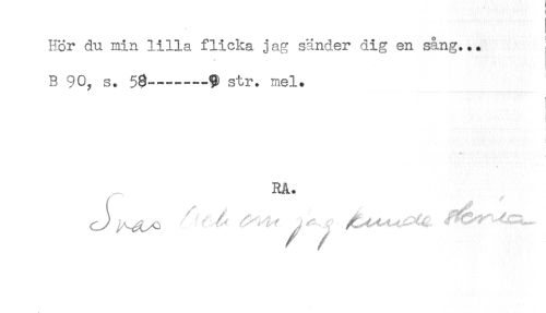 //// Hör du min lilla flicka jag sänder dig en sång... //// B 90, s. 5$------str. mel. //// i //// ! //// RA. //// / / ////
