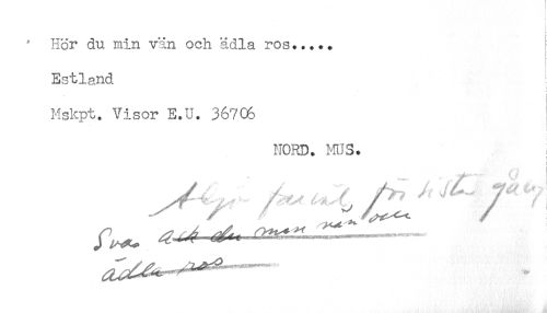 //// r //// f //// Hör du min vän och ädla ros..... //// Estland ! //// t //// < //// Mskpt. Visor E.U. 36706 //// t //// NORD. MUS. //// < //// < //// /l ^ ^ ^........ ^ ////