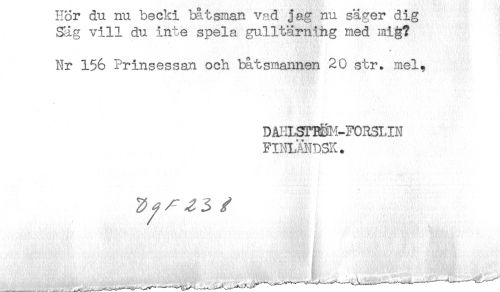 //// ilOJL U.U. ilU. DtHJiYJL ^ ^^jdLicäJLL v ctAA J ULA //// Sig vill du inte spela gulltärnihg med mi§? //// '. '. < * //// Nr 156 Prinsessan och båtsmannen 20 str. mel, //// DAHLSTTåH-FORSUN //// FIHLÄNDSK. ////