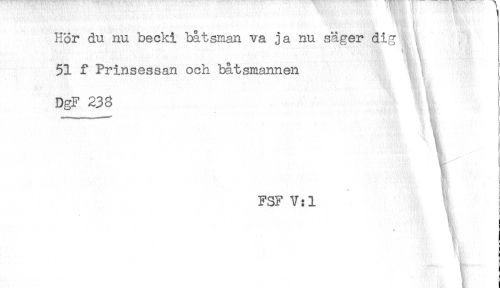//// --<*'"' *'At WHNn^' Tar.' //// Hör du nu becki båtsman, va ja nu säger dig //// '.'7,- t-aaa V'. //// <;'-'. Ytt. //// 51 f Prinsessan och båtsmannen } //// DgF 238 //// — —— — //// FSF V:1 ////