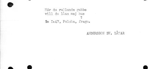//// Hor du. rullande gubbe //// vill du låna mej hus //// * //// Se 1:47? Polska, frag?n. //// MDERS30N LÅTAR //// * //// t. ////