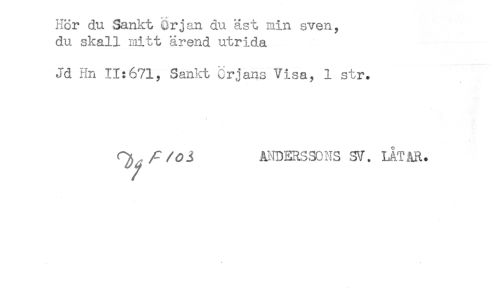 //// Hor du Sankt Crjan du äst Biin sven, //// du skall niitt ärend utrida //// Jd Hn 11:671, Sankt Crjans Visa, 1 str. //// r^/r/^J MDERSSCNS SV. MTAR. ////