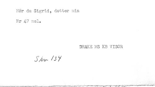 //// Hor du Sigrid, dotter min //// Nr 47 mel. //// DRAKE MS KB VISOR //// j ^ / j y ////