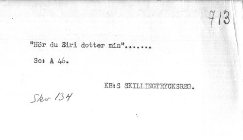 //// t //// * //// "Hor du Siri dotter mia"....... //// Se: A 46. //// < //// KB t S SKILLINGTHYCK3REG. ////