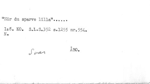 //// "Hör du sparve lilla"...... //// ItS. KO. S.L.S.352 s.1255 nr.55A. //// N. //// ÅBO. ////