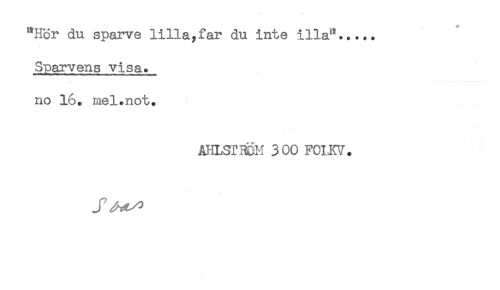 //// "Hör du sparve lilla,far du inte illa"..... //// Sparvens visa. //// no 16. mel.not. //// AHLSr mM 300 FCIKV. ////