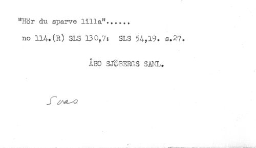 //// "Hör du sparve lilla"...... //// no 114.(R) SLS 130,7: 3LS 54,19. s.27. //// ÅBO SJÖBERGS SAML. ////