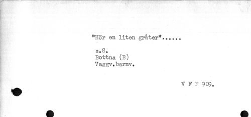 //// * //// ...... .......; //// - //// "Hör en liten gråter"...... //// t. , //// Bottna (B) //// Vaggv.bamv. //// . //// PK-' //// V F F 909. ////