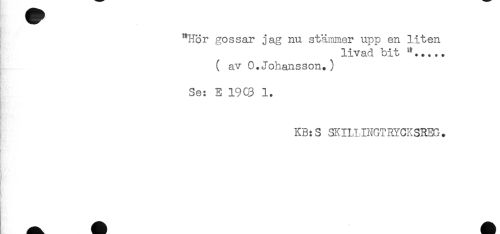 //// "Hör gossar jag nu stämmer upp en liten //// livad bit "..... //// ( av O.Johansson.) //// Se: E 1903 1. //// KB:S SKILLINGTRYCKSREG. //// t- //// Btti.-.. ////