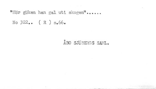 //// t //// "Hör göken han gal uti skogen"...... //// No 322.. ( R ) s.66. //// ÅBO SJCBERGS SAJiL. ////