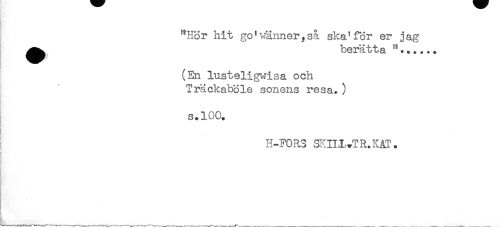 //// "Hör hit gokänner,så ska'för er jag //// ^^ berätta ^...... //// ^ * //// ! (En lusteligwisa och //// Träckaböle sonens resa.) //// s.100. //// ! H-FCR3 SKIII^TR.KAT. //// \ ////