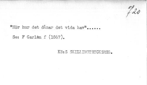 //// "Hör hur det dånar det vida hav"...... //// i //// Se: F Carlén f (1367). //// < //// ! //// ) //// KB:S SKILIINGTHYCKSREG. //// i ////
