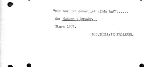 //// "Hör hur det dånar,det vilda haf"...... //// Se: Munken i Hutaby. //// a' ' //// Skara 1867. //// LUB.SKILL:IR PRDSAR3G. //// * //// ^ * ////